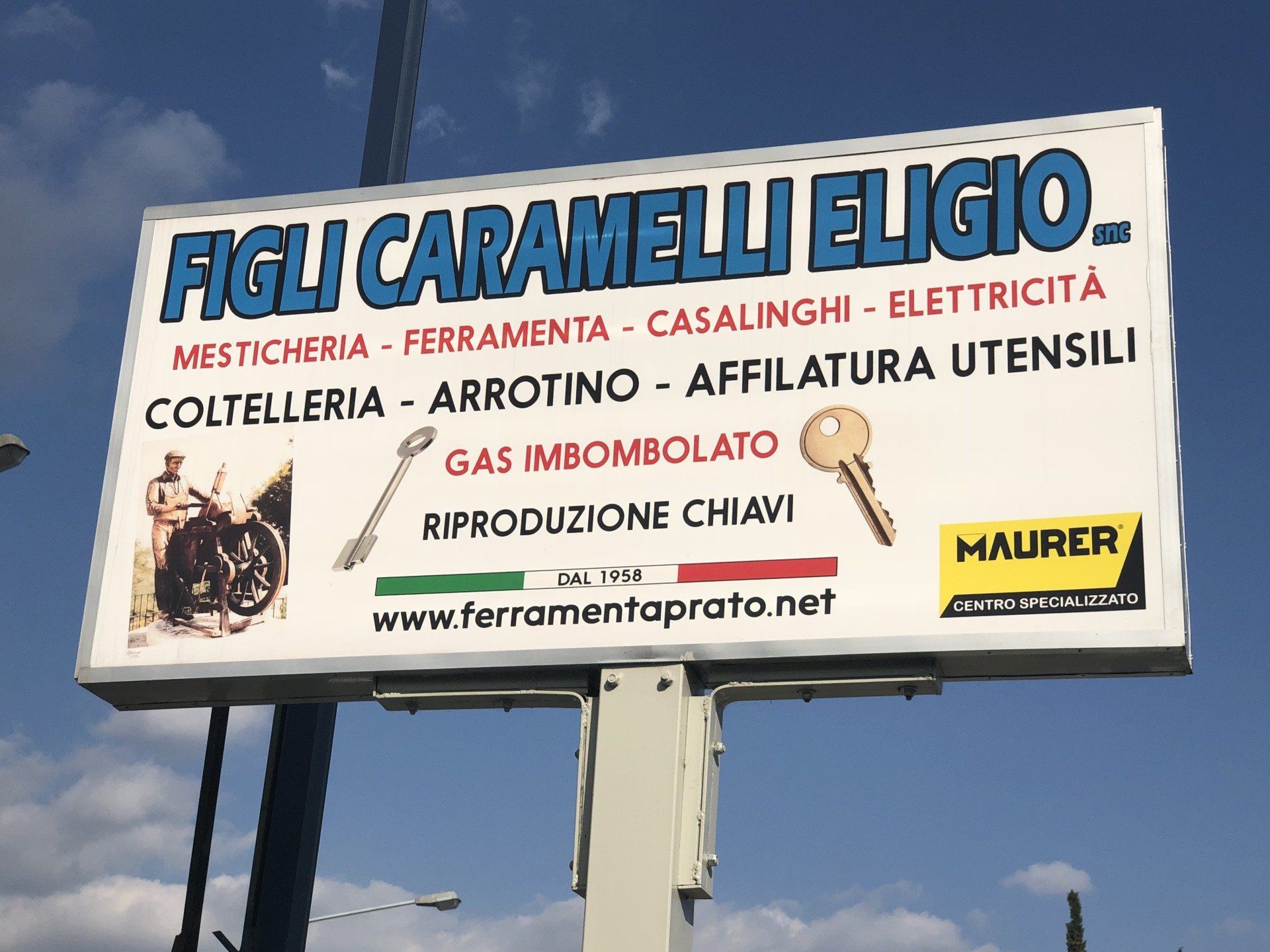 La Ferramenta Caramelli Eligio nasce nel 1958 per volere di Nostro padre. Il negozio, nel corso degli anni, acquisisce con l'inserimento al lavoro del figlio maggiore Massimo, la specializzazione in coltelleria, laboratorio di arrotino e centro affilatura con macchine utensili.